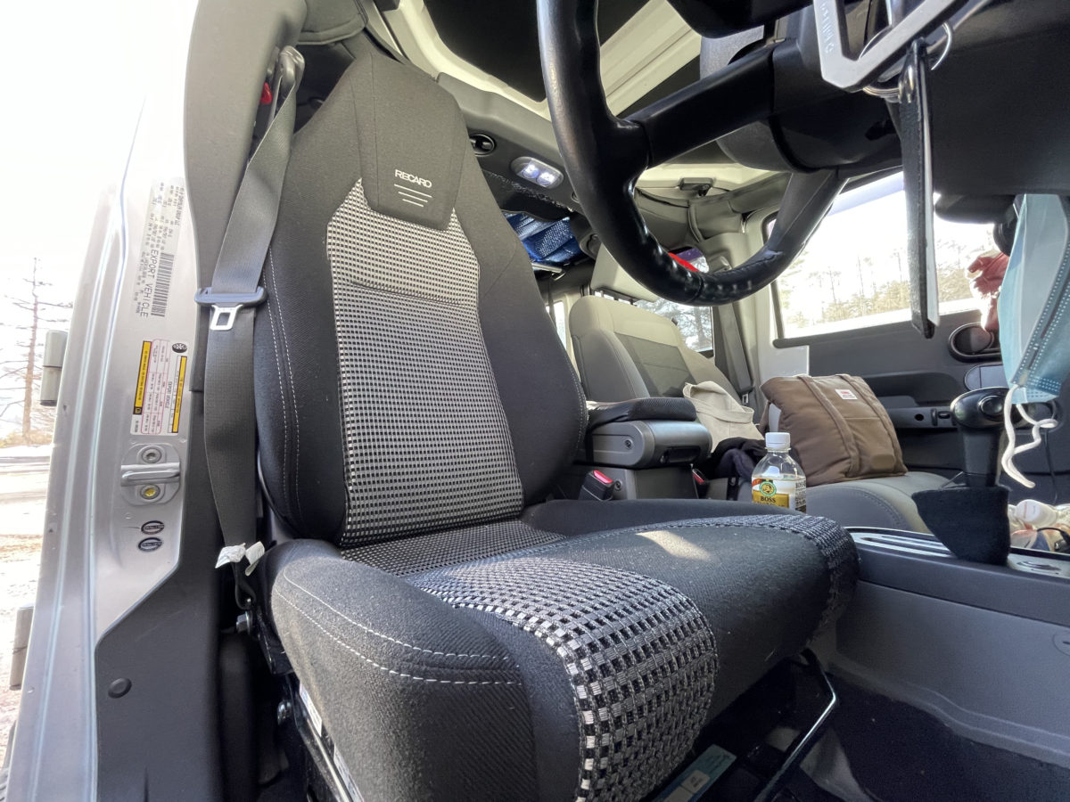 結構あります。まず車高を2インチ上げてます。ライト類は全部LEDにしています。雪国向けではないのですが、カッコいいので。あと目立つ点といえば前後のバンパーをアメリカのRUBICONというグレードのに変えています。あと、シートもRECAROに変えています。