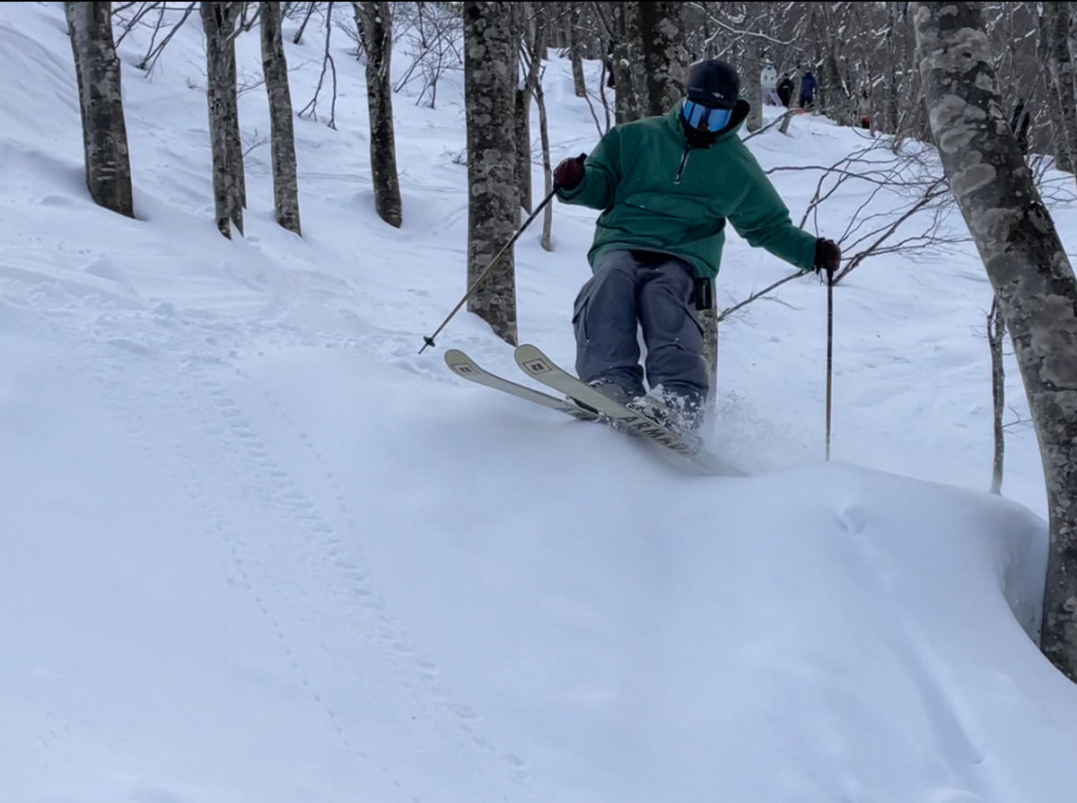 その他にも、高井富士は今、ツリーランエリアが豊富で、みんなが入っちゃうんで、コースとして開放しようってスキー場が伐採してるんです。だから今はツリーランエリアがめちゃくちゃ広いです。