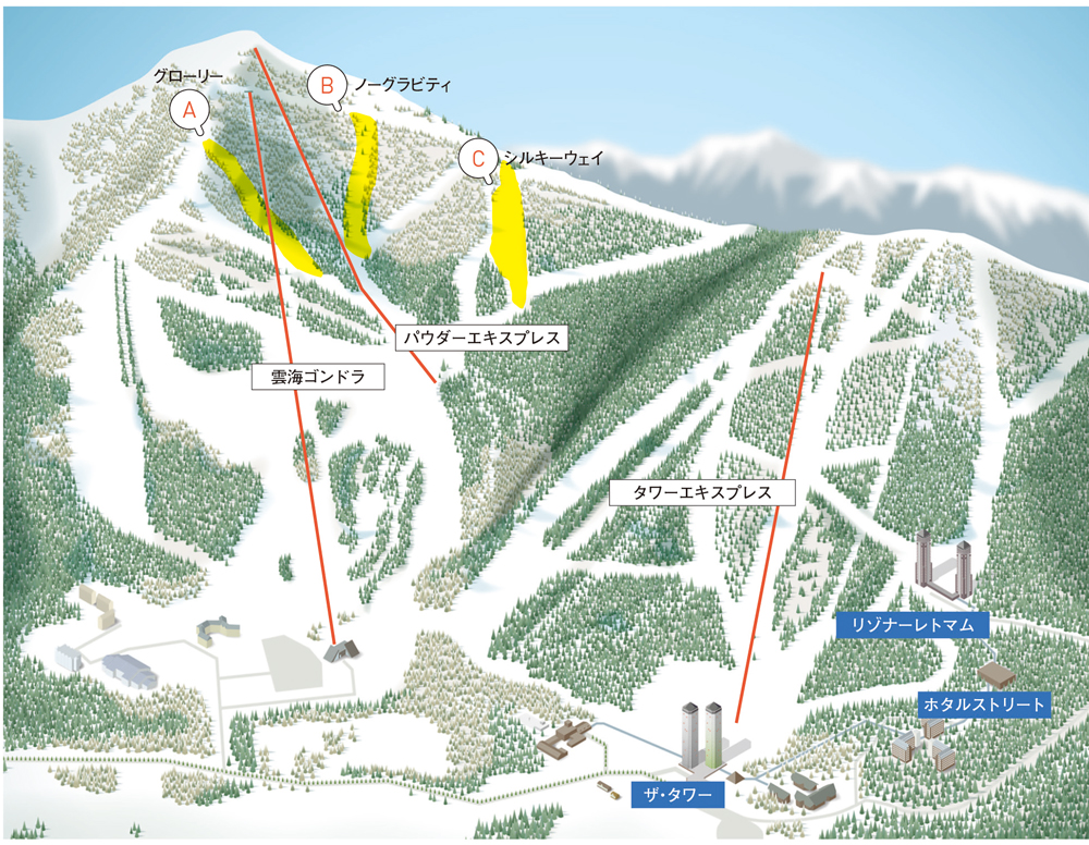 | 最短アクセス方法 | 雲海ゴンドラ or トマムエキスプレス→パウダーエキスプレス |