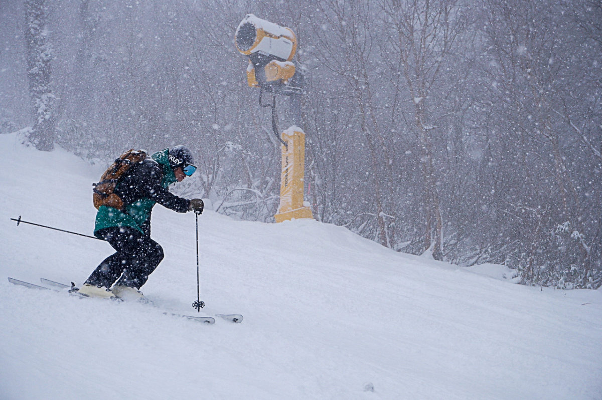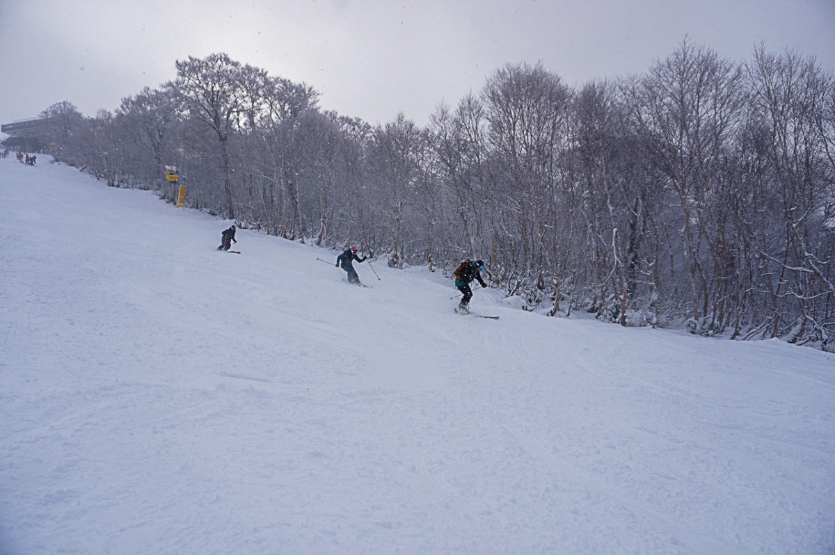 予定していた12/12に確実にオープンできたのは、山頂エリアのやまびこDコースから上ノ平ゲレンデまで総滑走距離3250mに渡って最新のスノーマシンを22台設置したおかげです。 標高1400mほどにあるコースは天然雪と人工雪がミックスされ、距離も十分に滑れます。