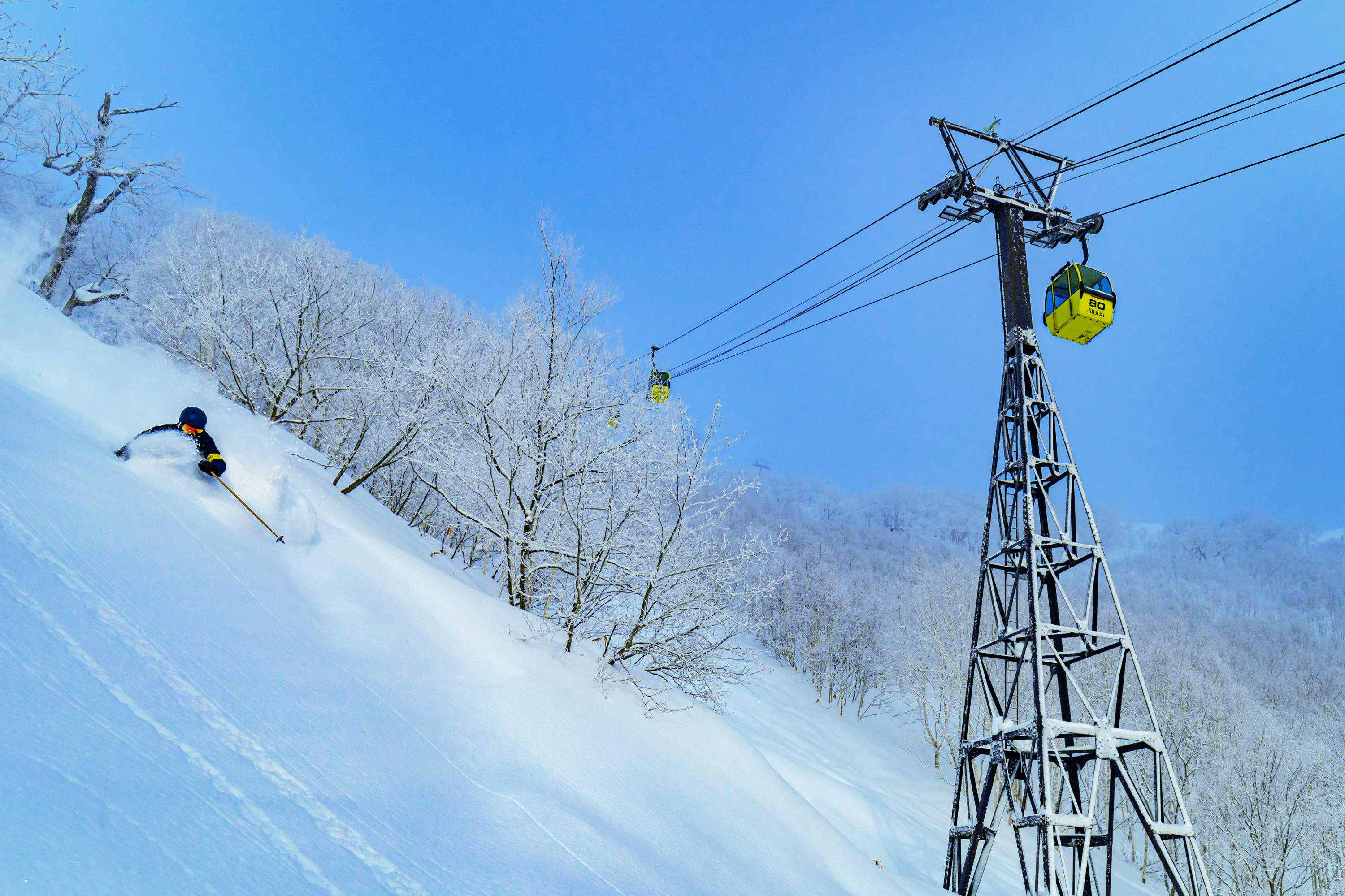 ここは冬になると時にマイナス30度をも下回る気温や、海から離れた湿度の低さによって、ドライといって申し分のない極上パウダーに恵まれることで知られる。