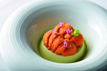 ウニをたっぷり使ったリーキのパンナコッタ