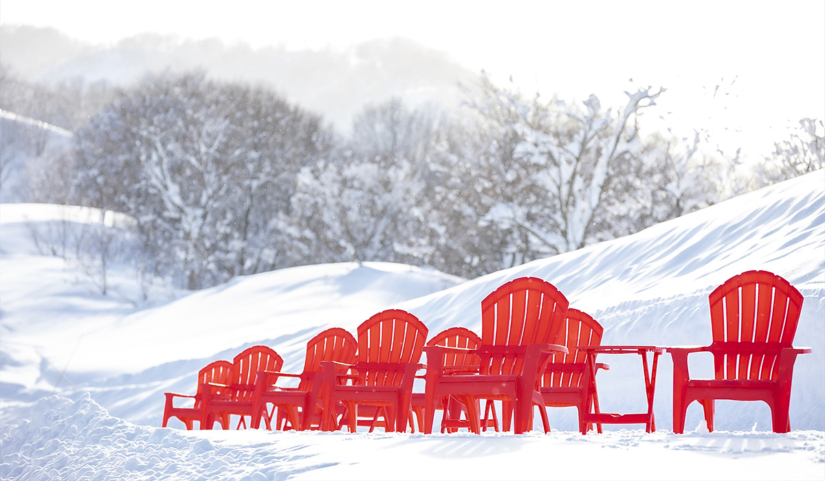 実は秋ごろにSTEEP編集部にスノーガーデンの案内が届き、イメージ図を見たときには、正直なところ「う~ん、気持ちはわかるけど…大変そう~」なんて話をしていた。それがこうして実際、雪の上で利用してみると、なんとも風情があって「おお、いいじゃない、機能してる、癒される、すごくいいね!」となったのであった。