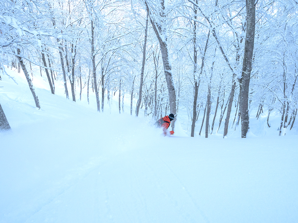 このように、それぞれ変化に富んだ自然地形を活かしたツリーランエリアは全部で14あり、写真や映像のように美しい森のなかで心ゆくまでパウダーライデングを楽しむことができる。これは夏油ならではの醍醐味だ。