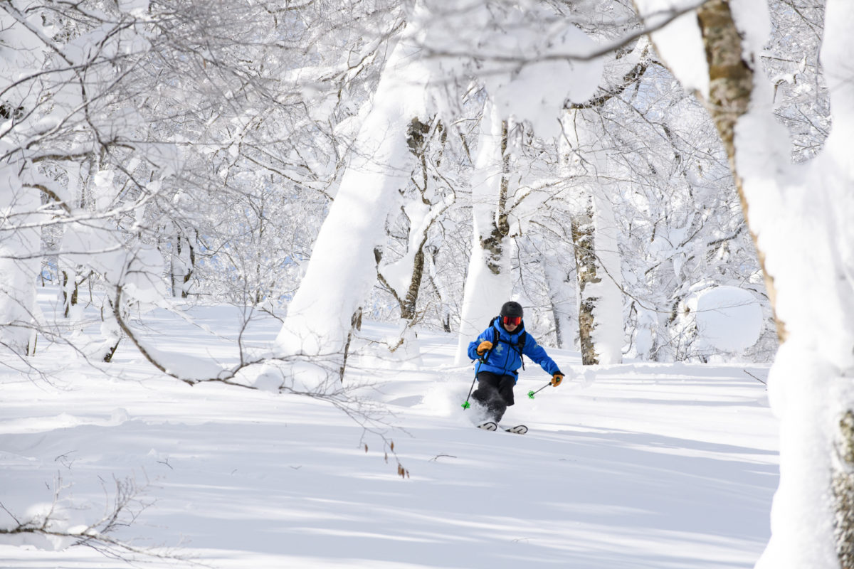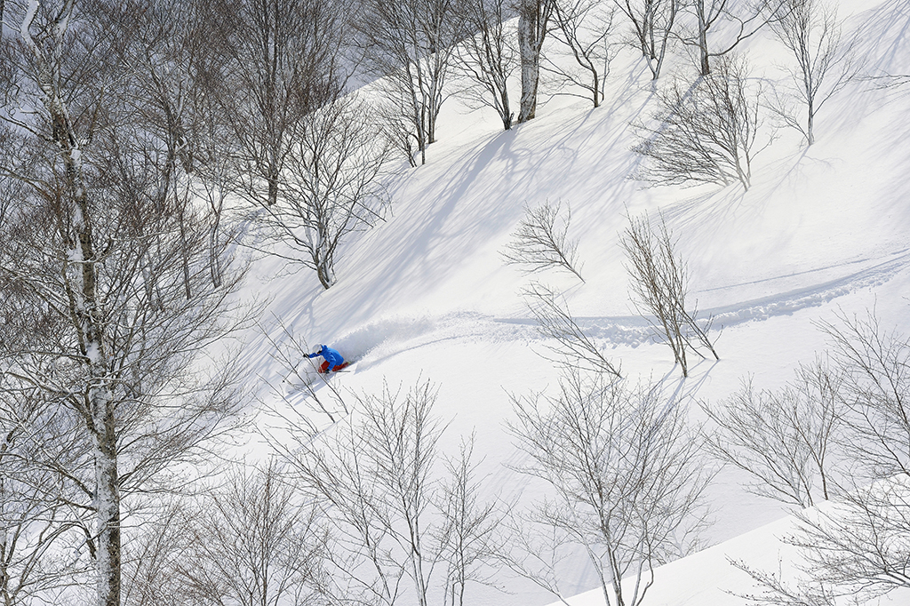 豪雪パウダーと肩を並べる夏油の「顔」となっているのがゲレンデ内のツリーラン。夏油高原スキー場は沢状の起伏に富んだ豊かな地形が織りなす美しい森を持ち、その広大なツリーフィールドが滑走可能という夢のような環境だ。