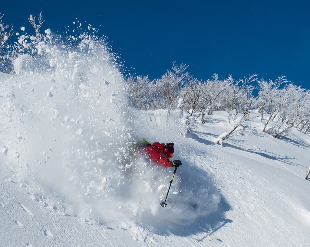 多くのスキー場がスノーマシンをフル稼働させている11月から1.5mも天然雪があり、その雪付きの速さは国内有数。12月には瞬く間に5mを越え、トップシーズンの1月2月には10mにも迫る量の雪が降り積もるのだ。毎日のように切れ目なくコンコンと降り続く雪によって、常にゲレンデのフェイスはまっさらのパウダーによってリセットされる。