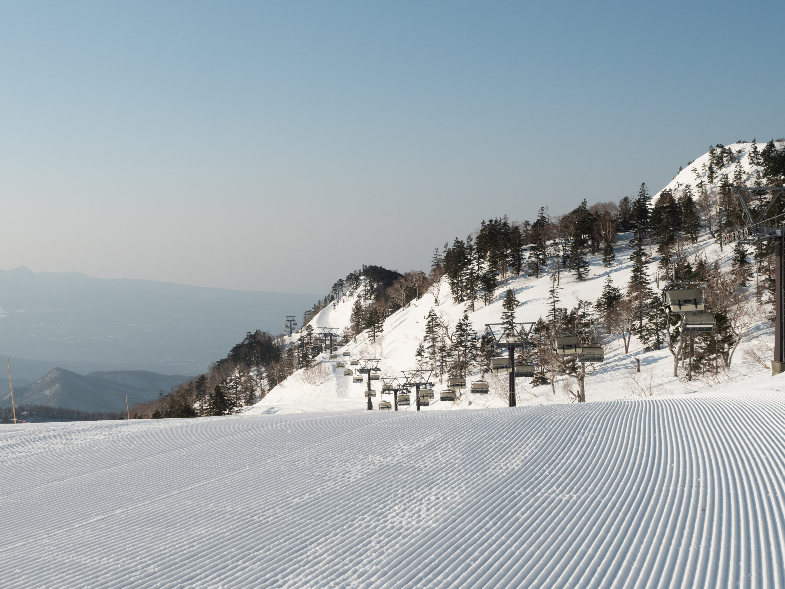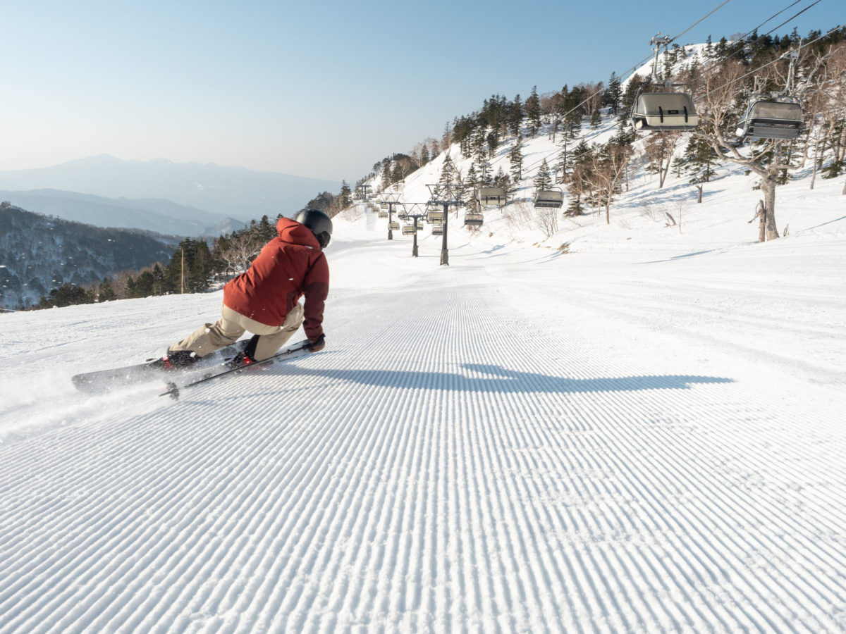 ベースエリアの標高が1250m、山頂で1870mと関東圏のスキー場のなかでも高所に位置し、極上のサラサラ天然雪が降るとして人気の場所だ。広大なゲレンデの中には上級者から初級者までが楽しめるバリエーション豊かなコースが点在し、スキー場トップからボトムまでの総滑走距離は約3300mと超ロングランが楽しめる。
