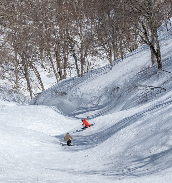 このエリア一帯が豪雪地帯として有名だが、ハイシーズンにはコンスタントに積雪が500㎝を超えてくるのだから、その降りっぷりはケタ違い。スキー場側もこの豊富すぎる雪を最良の形で提供できる環境を整えている。掲げるキーワードは「非圧雪主義」「大自然そのまんま」。圧雪をしない努力を続け、65%以上が非圧雪エリア&コースとして設定されている。