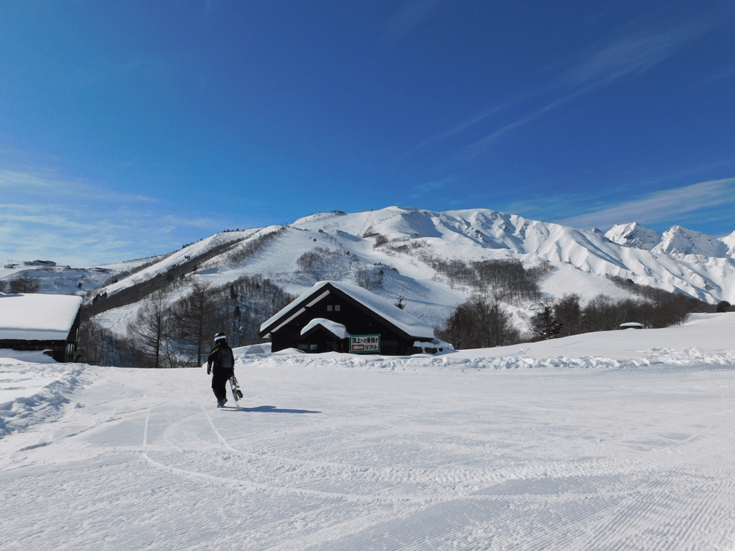 2,000m級の奥羽山脈の南部に位置する。トップ部の標高は1,800mを超えているうえ、北向き斜面なので「本州最高級のパウダー」と言われる雪質が自慢。そのため例年12月上旬から5月GWまで6ヶ月に渡るロングシーズンを誇っている。ロープウェイで標高差1,350mの高原へ一気にアプローチ、そこはさながら「天空のゲレンデ」の趣きだ。