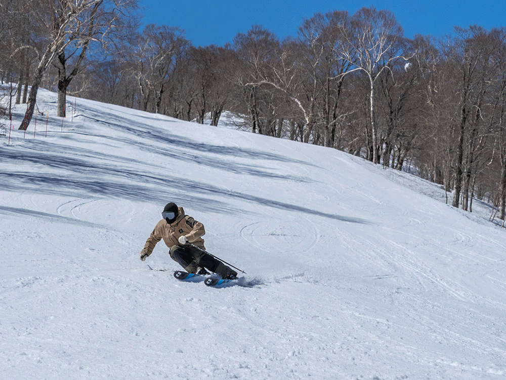 本州有数の豪雪スポットといわれるかぐら、3月上旬で山頂には360㎝、山麓でも260㎝もの積雪がある。よって春も長く、みつまたかぐらは、’22-23シーズンは5月21日(日)まで営業予定だ。ゲレンデからバックカントリーにデビューしたい人にはもっていこいの場所として大人気のかぐら。