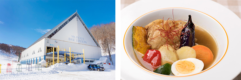 ルスツ最長3.5kmのコースを滑り切ったところにあり、頑張ったご褒美的に美味しい食事が待っている。人気は野菜たっぷり、やわらかチキンのスープカレー。