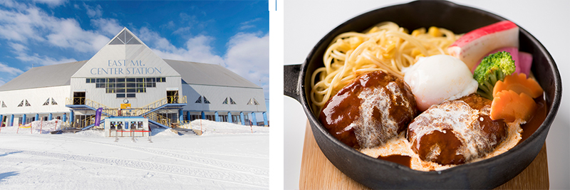 人気コース「スティームボードA・B」に直結。ルスツリゾート内のゲレ食で一番人気の「とろとろたまごのオムライス」を熱々でいただこう!