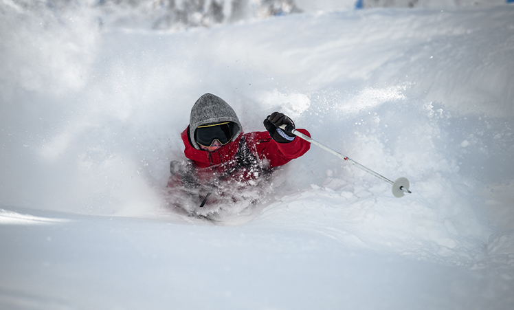 パウダーヘブンリーコース他、非圧雪コースでフレッシュスノーのスプレーを上げることができるなんて最高! 朝一番のピカピカにグルーミングされた3,500mものイゾラグランコースのコーデュロイバーンを滑るのもいい。
