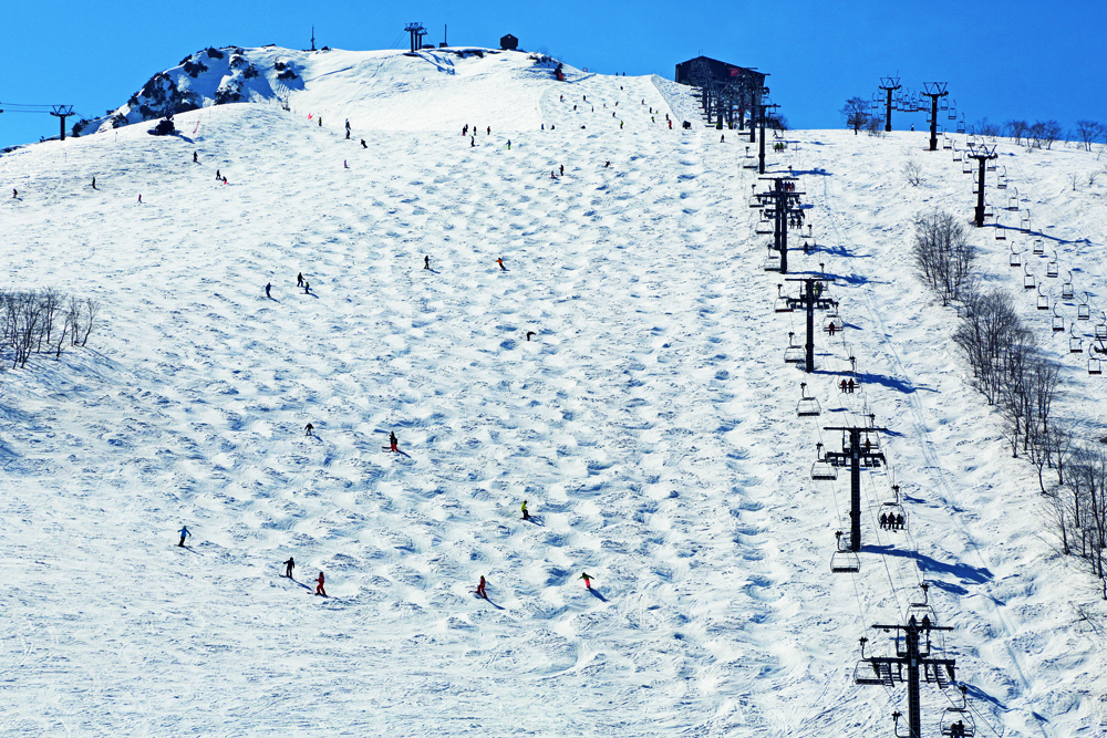 ゲレンデ上部は 11月下旬から5月連休明けまで滑れる長いシーズンが特徴的。ゲレンデレイアウトは、「アルプス」「とおみ」「いいもり」の個性豊かな3つからなり、モーグルコース、パーク、キッズゲレンデなどの専用エリアがある。