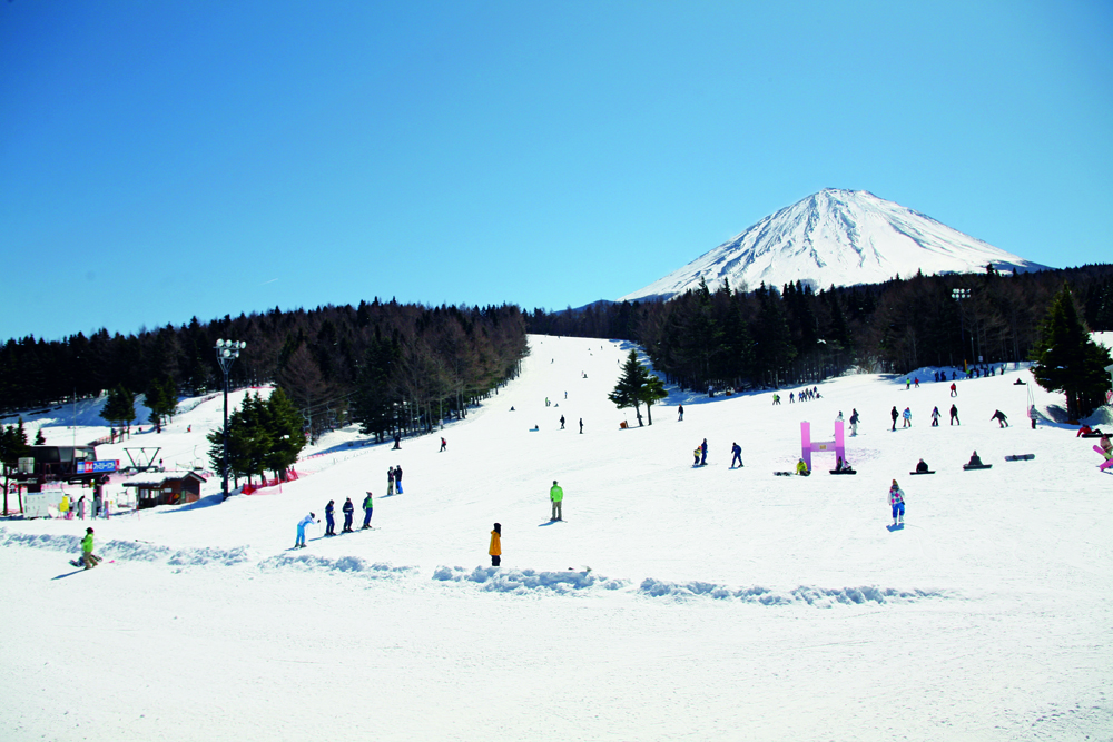 中央道・河口湖ICから約13 km、東京、横浜、静岡からわずか90分でアプローチできるという、すばらしいアクセスの都市隣接型スキー場。 その名の通り、ゲレンデから富士山を一望できる絶好のロケーションが、ココの何よりのセールスポイント。富士山に見守られているような感覚に安心感を覚えたり、励まされたり、いかにも運が開けそうな気分になる(人もいるはず)。