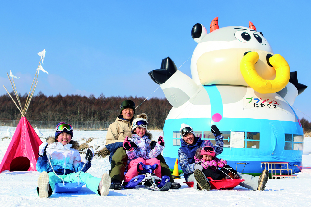 いまでは珍しいスキーヤーオンリーのブランシュたかやま。晴天率が高いことと、360度のパノラマビューが魅力だ。 ベース標高も1,350mと高いうえに、スノーマシンもフル稼働で、シーズン中は安定した積雪量を誇っている。