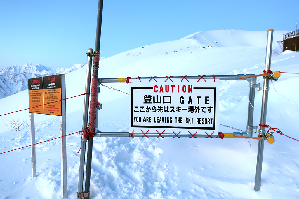 かぐらスキー場の最上部、第5ロマンスリフト(通称ゴロマ)を下りるとBCゲートがある。天候不順や斜面状況不良以外の午後12時または13時半までオープンしている(時期により異なる)。ゲート管理のパトロールに登山届けを提出して、ビーコンチェッカーを通ってフィールドへ出る。