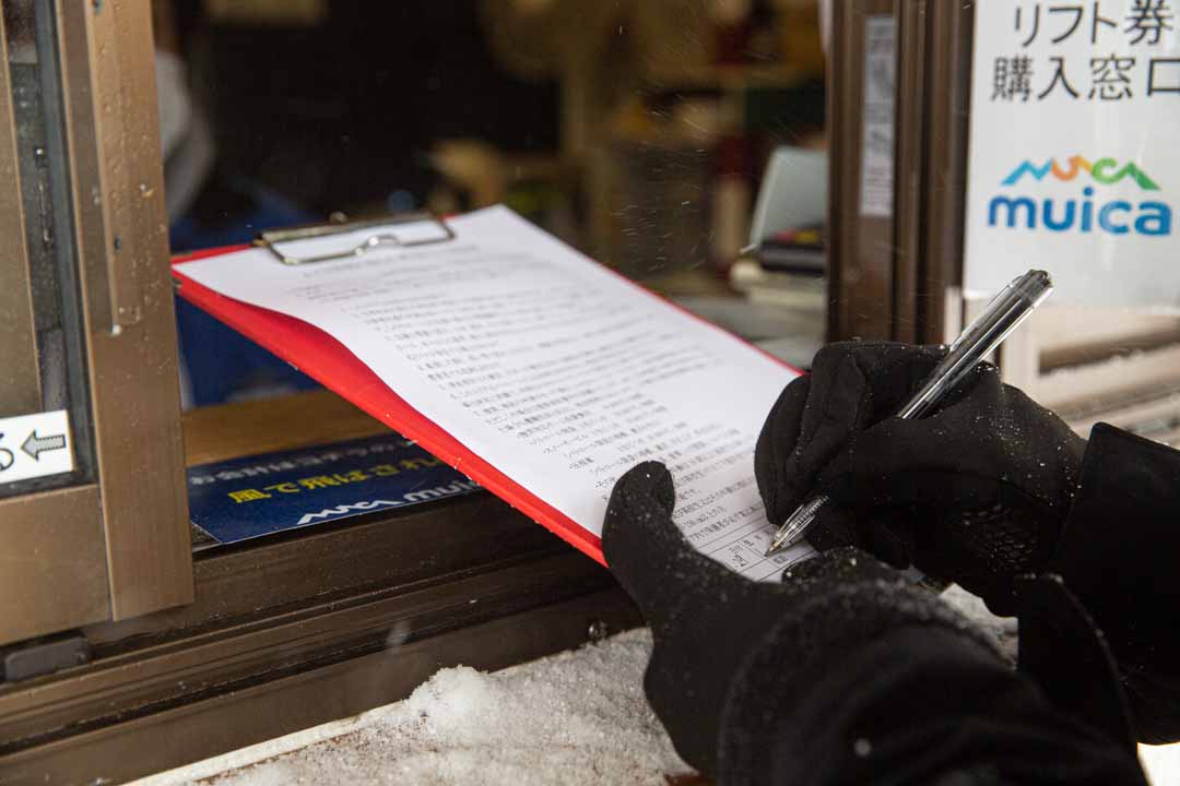この管理外申請山岳コースへ入るためには、事前にムイカスキー場のチケット窓口で申請を行い、腕章をつけて行く必要がある。腕章のデポジット1000円必要。腕章返却時に返金される。