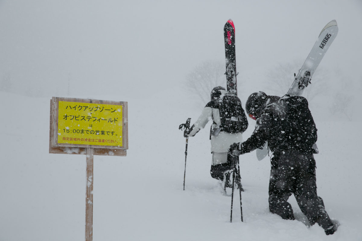 このハイクアップゾーンは歩くところだけ圧雪車で踏んでいるため、つぼ足でも歩ける。しかし、雪が多い日はクライミングスキンやスノーシューを持ってきたほうが快適だ。また、ハイクの距離は150mしかないので、本格的なバックカントリーに出る前にクライミングスキンをつけて登行練習をしたい、という初心者にもオススメだ。