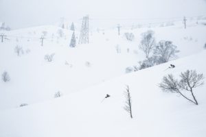 スキー場頂上部から稜線へ、ここから延びる尾根のオープンバーンや林間をロープウエイ山麓駅舎方面へ向けて滑っていくが、このエリアの斜面の多くはとても急峻だ。雪崩事故が頻発するエリアとしても知られ、40度を超えるようなスリリングな斜面も多く、滑走時の雪崩発生には常に意識が必要なほど。天候悪化時の滑走や単独滑走は控え、ガイドツアーに参加したり熟練者と滑ることが推奨される。ゲートを通らないその他のエリアは滑走禁止。雪崩事故や遭難事故多発な場所だけに、ルールを守っての滑走が必要だ。