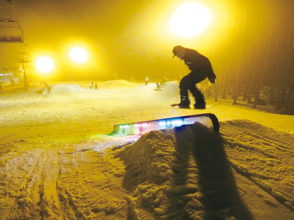水上ICから3kmのアクセスのよさが魅力のノルン水上。ナイターは月~木・日曜日は22時まで、金・土曜日はなんと24時まで営業と超長い。さらにナイター滑走できるコースはスキー場のメインとなり、全体の6割は占めるD・Eコース。その距離およそ1kmとロングランが楽しめる。山の中腹にあるパークもナイターでも利用可能。とにかく夜型ライダーにはもってこいのナイター天国だ。