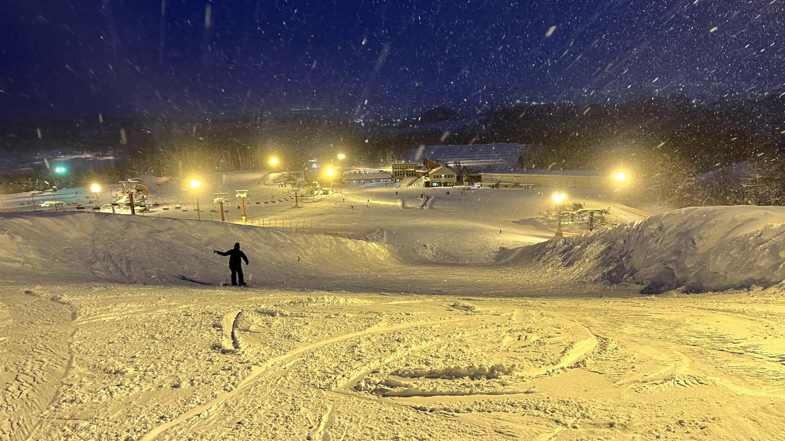 夜は昼間にできたコースの起伏やコブが一番育っているので、1日で最も滑り応えのあるコースコンディションになっている。朝イチのきれいな圧雪バーンや面ツルパウダーの魅力とはまた別に、「不整地攻略」という意味で、難しいことにチャレンジするおもしろさを一番満喫できる時間なのだ。その結果、滑りのテクニックが磨かれる、という嬉しいご褒美つきだ。