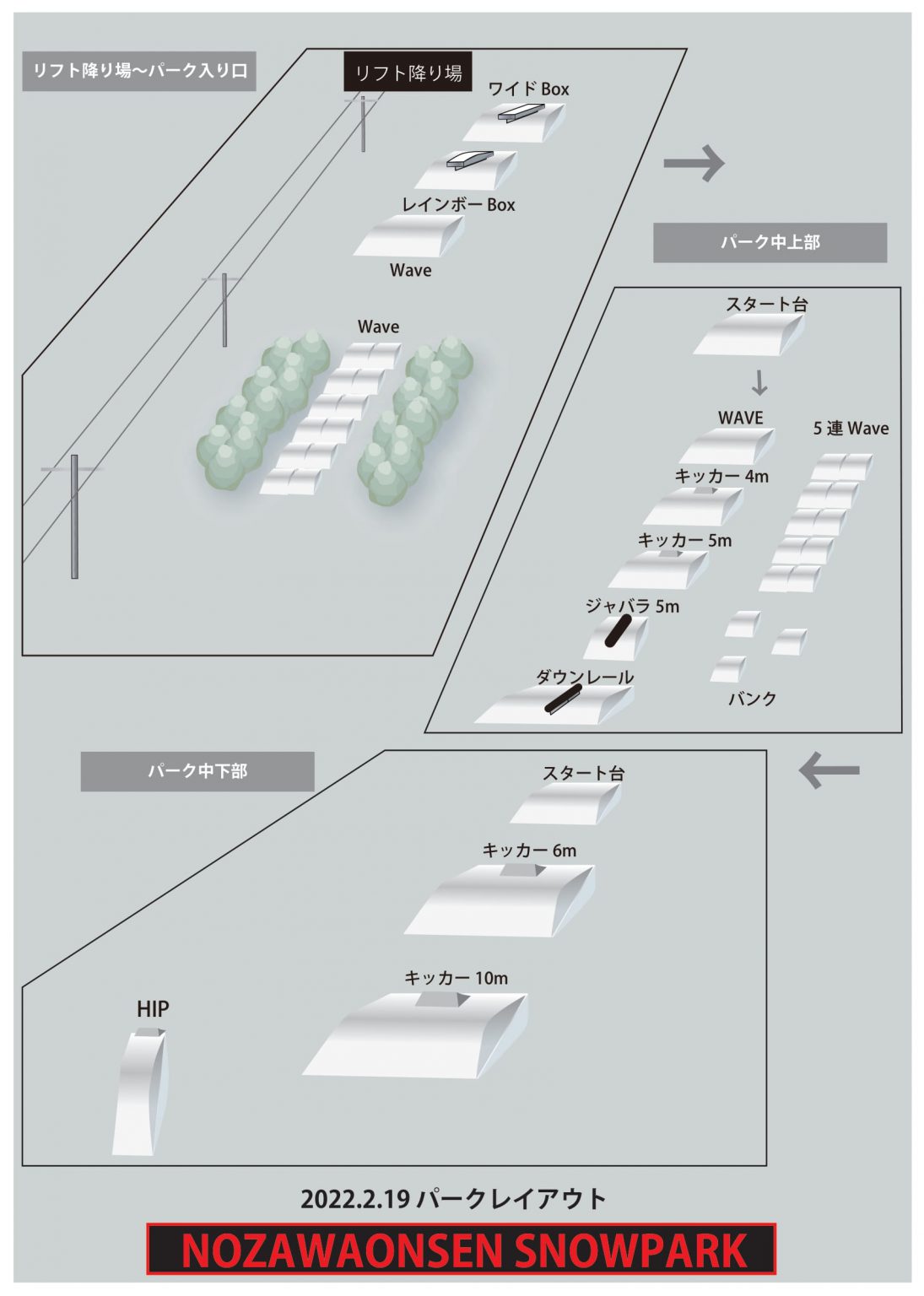 上ノ平に設置されている「上ノ平スノーパーク」も春に向けてグレードアップした。パーク初心者でも楽しみやすいミニボックスやウェーブなどを含めてアイテムも大幅に充実。日々のパークの様子をアップデイトにスタッフがInstagramに投稿しているのでチェックしてみよう。