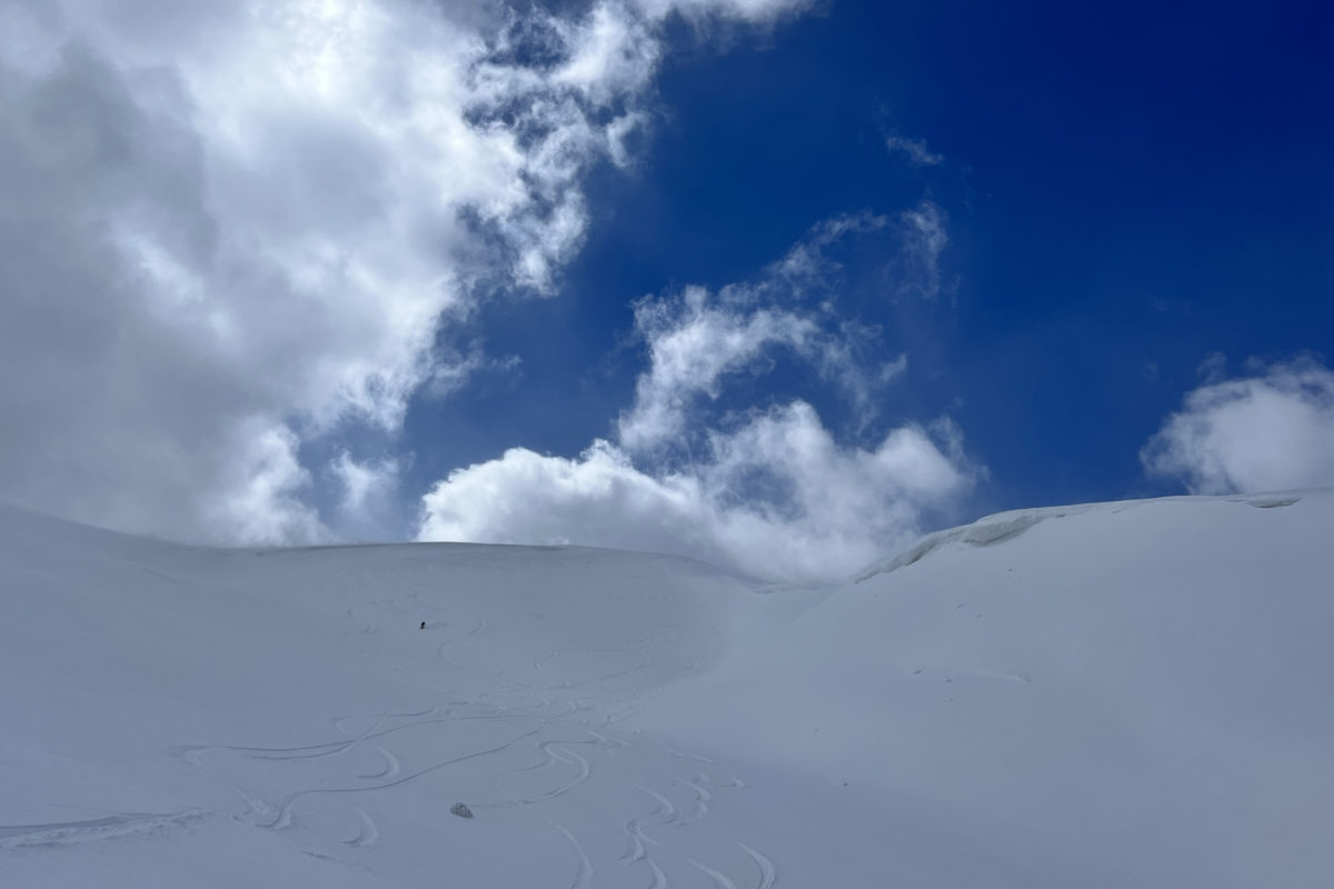 さらに、リグループポイントからもう一本。ここは風の影響が少ないのか、パウダーが溜まっている。