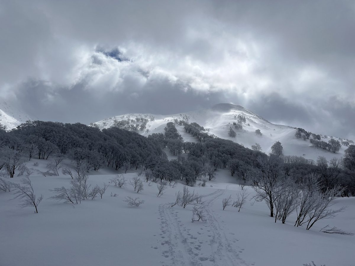 青森県にある八甲田山(標高1,266.5m)はバックカントリースキーの人気スポットとして、多くの人に親しまれる。