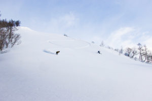 さらに、リグループポイントからもう一本。ここは風の影響が少ないのか、パウダーが溜まっている。