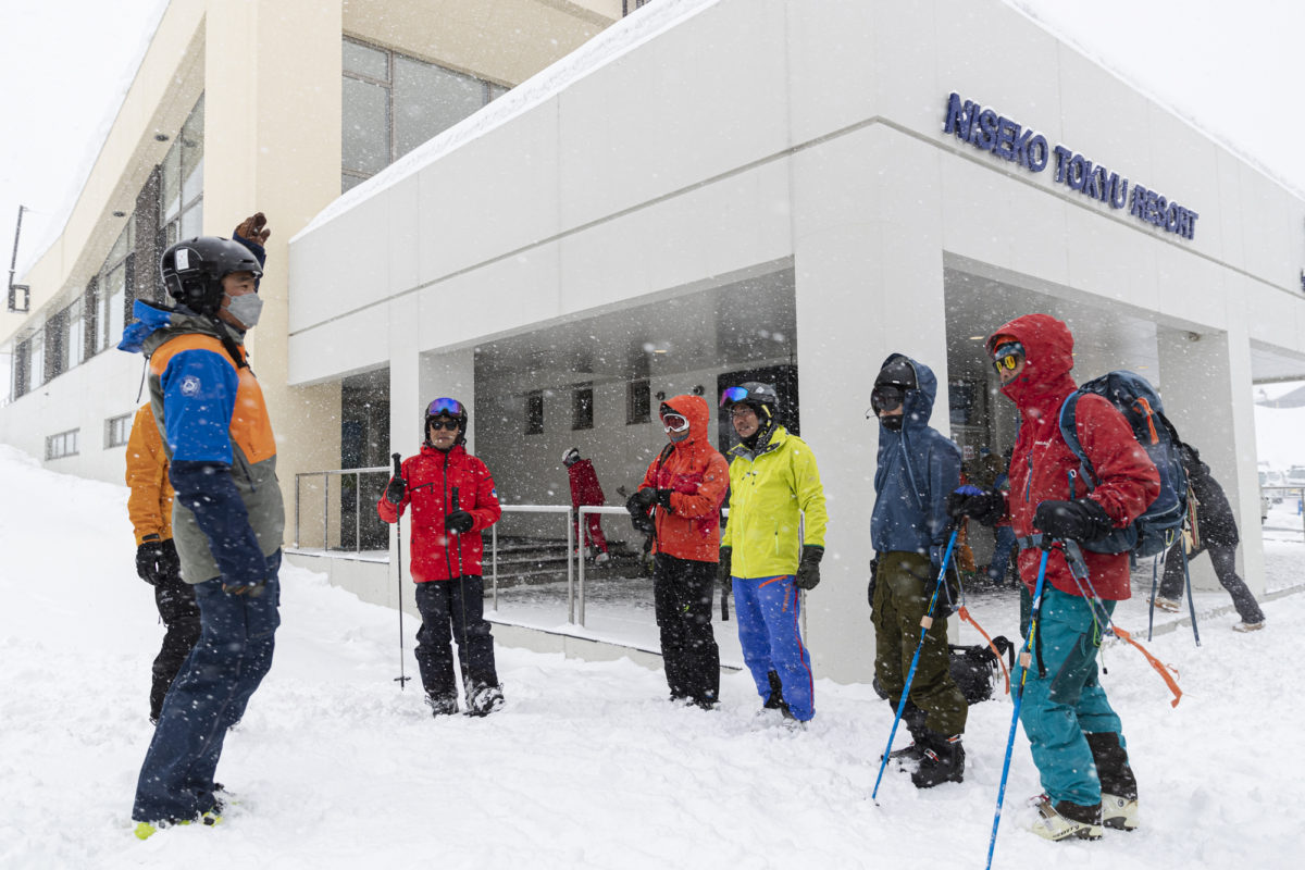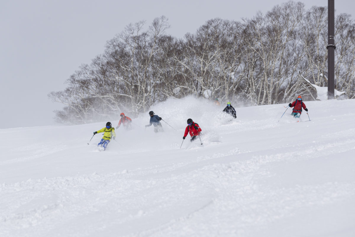 と声をかけてくれ、一斉にゴンドラへ向かって滑り込む。目の前にそびえる羊蹄山を眺めながら、皆で下までフレッシュなパウダーをいただく。このようなグッドコンディションのなかを滑れるのはなかなかない。参加者全員でこの気持ちよさを共有できた瞬間だった。