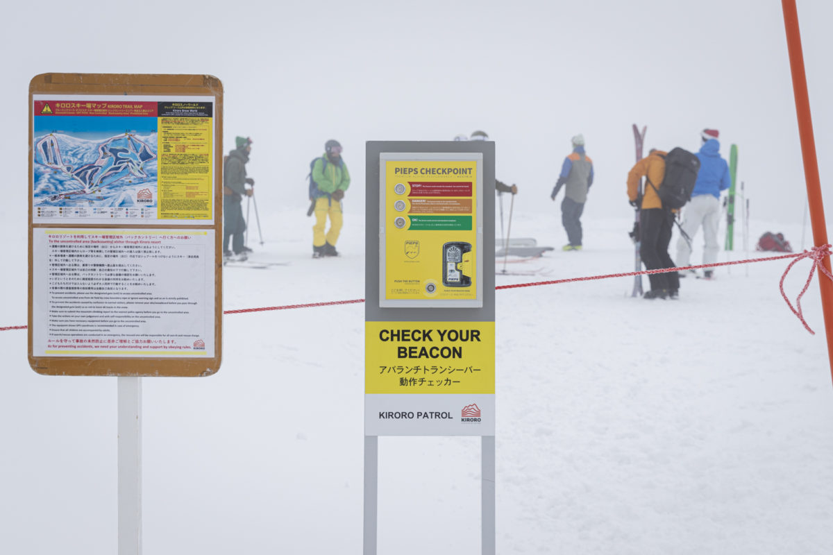 バスに揺られて下道を約1時間半。キロロに着くと小雪が混ざった薄曇りの空模様。晴れてはいないが、斜面は見えるので滑るのに苦労はなさそうだ。早速滑る準備をして山頂へ上がっていく。今回はスキー場だけでなく、ゲートからアクセスするBCエリアも滑走する。そのため、事前にアバランチトランシーバーをはじめとしたセーフティギアをチェック。ガイドが2人ついているため、BCを滑る際のリスクも軽減でき、比較的安心して滑れる。