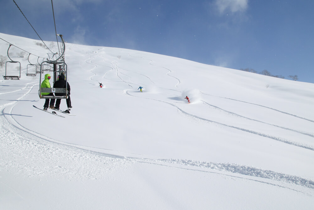 スキー場のなかでもとくに地形変化にあふれるコースのため、フリーライド派は外せない場所。全体的にはすり鉢状の地形になっており、風の影響を交わすため新雪が残りやすい。上部からスキーヤーズレフトは谷あいの地形が続くため、レフトサイドの壁を使いながらの滑走がおすすめ。