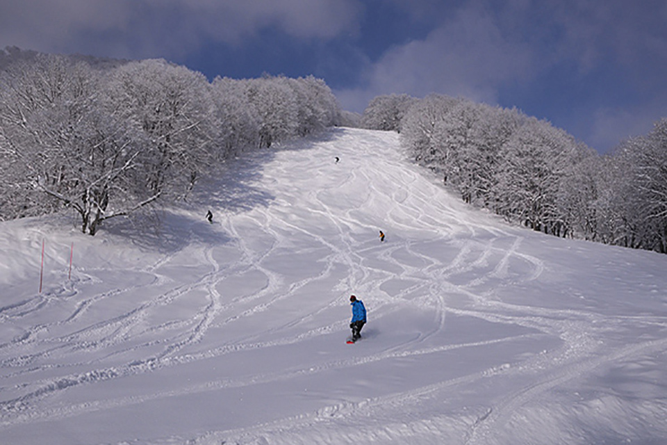 初心者や高齢者にもやさしい緩斜面。毎日グルーミングがきれいにかかるが、雪の降る日にはゆったりとしたパウダーフィールドとなり、ファットスキーの乗り試しやテレマークの練習にもぴったり。