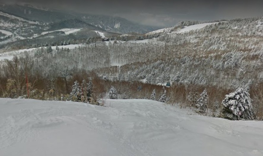 ロープウェイ山頂駅から右手に滑り込み、ロープウェイの下を通過して後半でbに流れ込むコースc。こちらもロングで降雪後はオーバーヘッドスプレーもあげられる深雪ぶり。降雪後はb・C・eの3本をクルクルと回していくらでも滑っていられるパウダー天国。