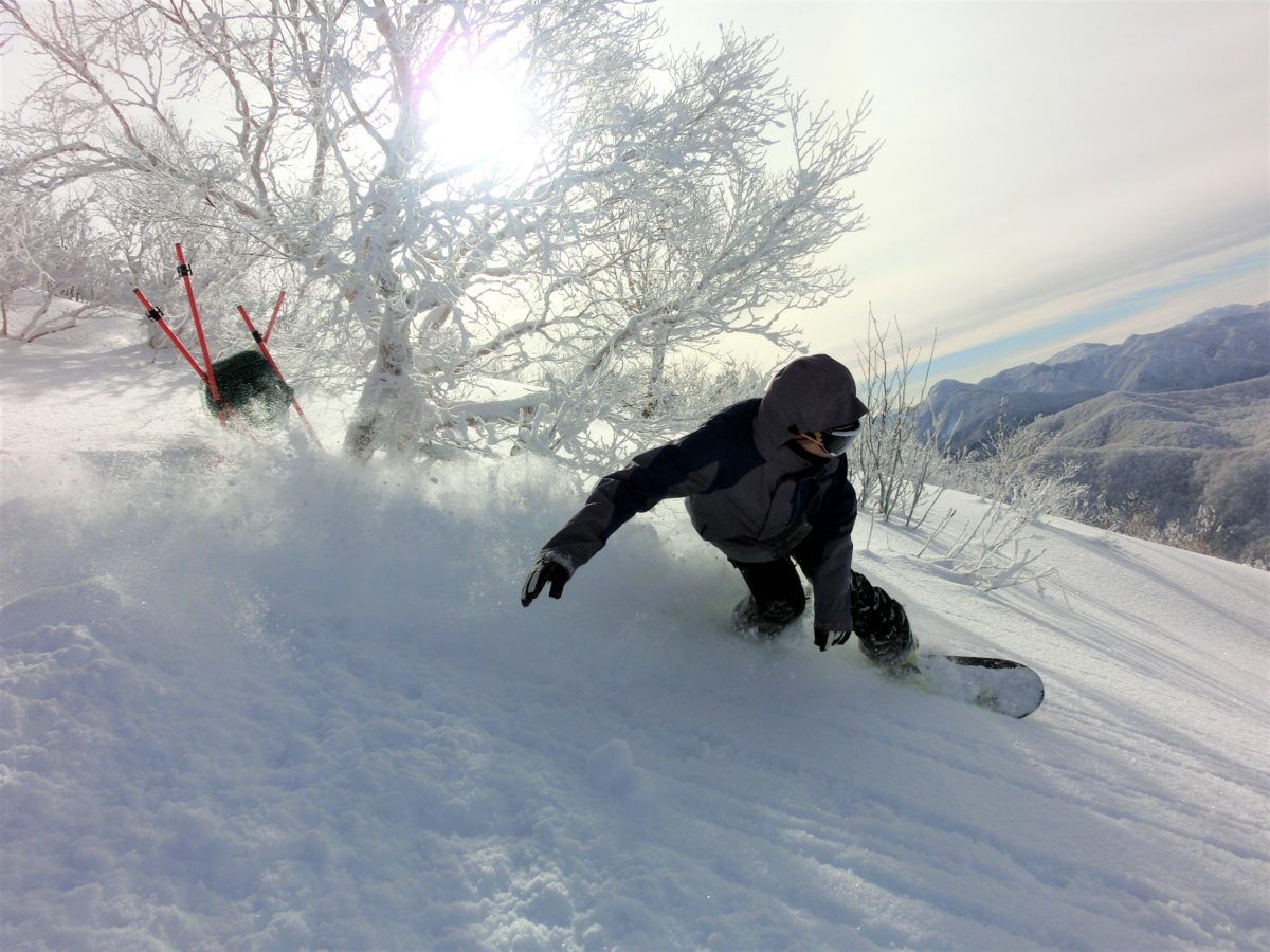 標高1,930mに位置する「スカイランドエリア」は樹氷林に囲まれた林間コース。標高の高さからもパウダーの質はお墨付きのパウダーゾーンだ。その中でも、「スカイランドAコース」は平均斜度8度と緩斜面が多く、内陸部特有のドライパウダーを1370mというロングでのんびり楽しむことができる。パウダー入門者向け。
