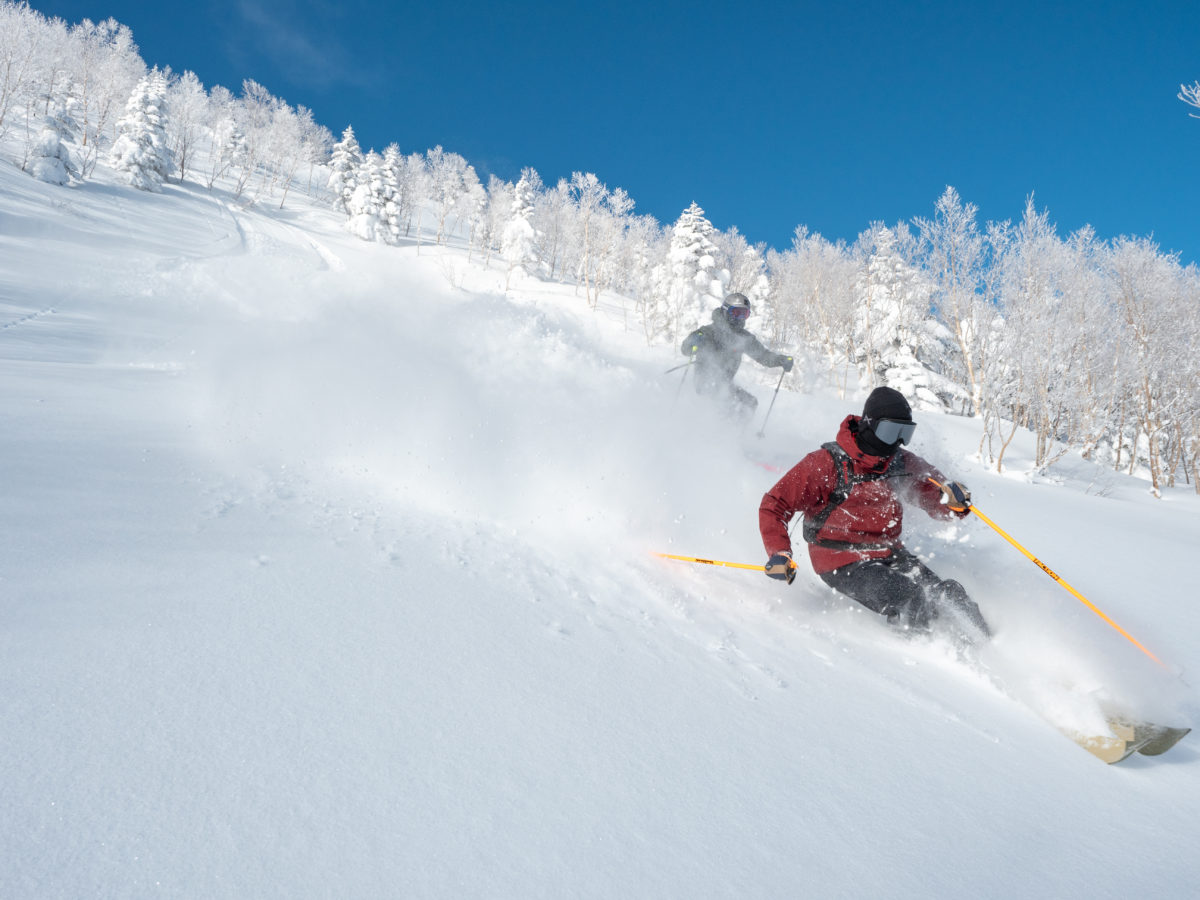 志賀高原最奥部の奥志賀は、志賀高原のなかでも天然雪のみで営業している数少ないスキー場。それほど大量の雪が降り、溜まるエリアなのだ。それだけにパウダー派にはたまらない。ゲレンデ内でも降雪後はオーバーヘッドのパウダーが味わえる非圧雪の急斜面や、美しいツリーライディングができる景観のよいコース、全長2.2kmものロングコースにスノーパークとバラエティ豊か。志賀の自然の美しさとスケールの大きさを堪能しよう。
