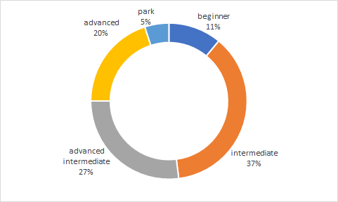 | 最長滑走コース 2km | リフト/その他 ゴンドラ1、リフト4、 カーペット3、プラッター1 | パーク 4 Half pipe2本 | コースレベル 大きく見る |