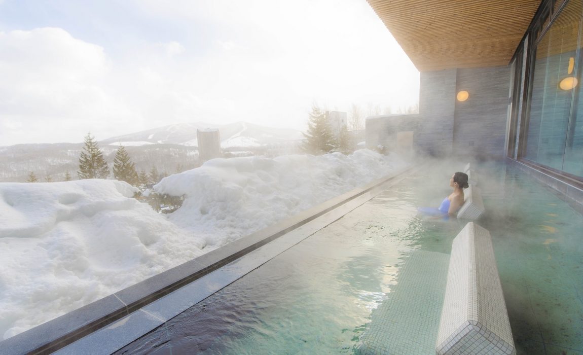 ウェスティン ルスツリゾートの2階にあるウェスティンルスツ温泉。目の前に広がる幻想的な雪景色、冬空にいっそう輝く満点の星空を眺めながら浸かる露天風呂は最高。泉質は「ナトリウム-炭酸水素塩泉 (中性低張高温泉)」。お肌がツルツルになるといわれる美肌の湯だ。