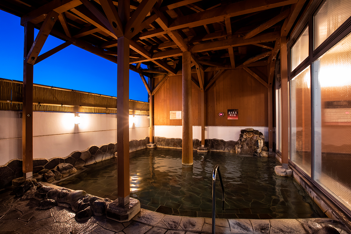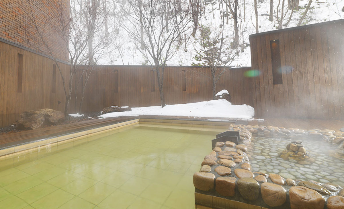 源泉掛け流しの温泉は「大浴場」と景観を楽しめる露天の「からまつの湯」の2ヵ所。露天風呂にゆったりと浸かりながら雄大なニセコ連山が眺められるのは、なんともいえない風情。酸性・含硫黄であり、マグネシウム・ナトリウム・カルシウム、硝酸塩・塩化物温泉と天然の栄養素をたっぷり含んで湧き出ているなめらかな透明湯で、肌にもやさしい美肌の湯だ。効能は慢性皮膚病、切り傷、糖尿病、高血圧症、動脈硬化症、痛風、便秘、筋・関節痛、痔など、湯治客も多い。