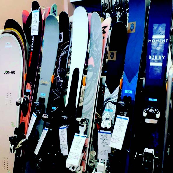 深雪をもっと楽しみたいなら、豊富な機種から選べる「エキスパートレンタル」を利用しよう。これは非圧雪滑走に適した充実のラインナップから板が借りられ、いつでもチェンジ可能なシステム。さらに10 回利用すれば、パウダー用のスキーを抽選で1本プレゼントという特典付きだ。