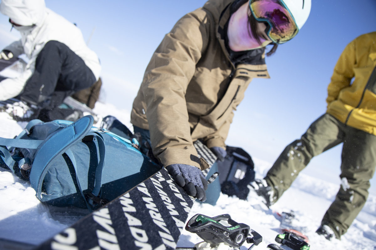 レバーの切り替えといっても固いしやりにく い。さらにはウォークモードへの切り替え時はビンディングをはめるレールの雪をきちんと取り除かないといけない。めんどくさがりの私にとっては大変な作業だが、滑っている途中で外れたら……そう考え、丁寧に繰り返し練習させてもらった。