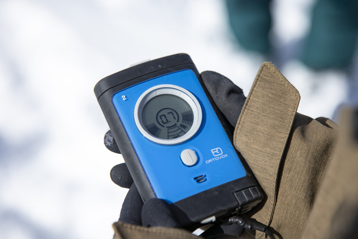 河口さんの声を合図に、持っているビーコンをサーチモードに切り替え。ビーコンには発信元の位置(距離や方角)が表示されるので、それをめがけて探すのだが……。