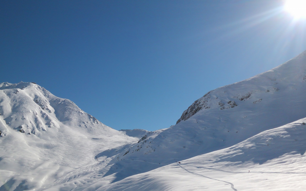 3000m級の山々が連なる豪雪地帯・北アルプス”立山”どこよりも早くから滑ることができ、どこよりも遅くまで滑れることから立山で始まり、立山で終わると滑り手達には言われます。シーズンスタートの秋はスローペースで。春は稜線を越え黒部ダムやカール地形のロングルートを。雪のフィーリングを感じ立山でシーズンインを共に迎え残雪のザラメシーズンまで楽しみましょう。快適な温泉宿の雷鳥荘に宿泊するプランです。
