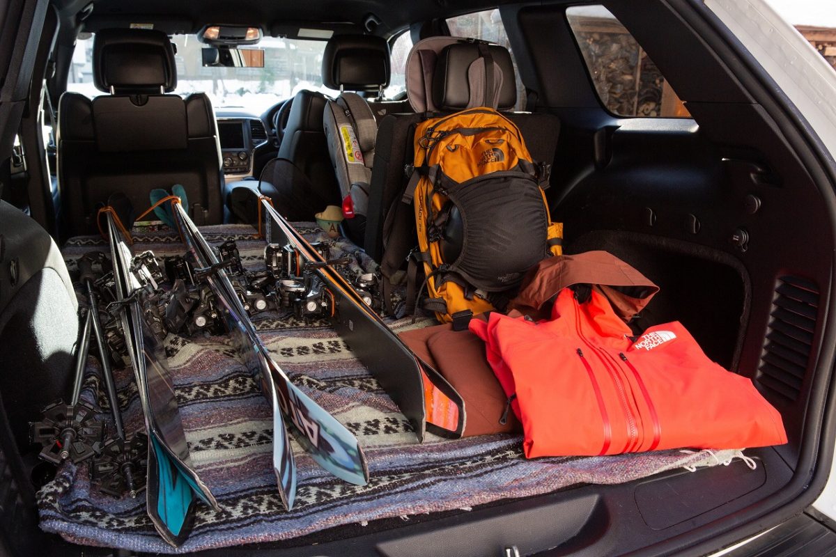 Wrangler(ラングラー)やCherokee(チェロキー)など、ほかの車種にも乗らせてもらったんですが、最終的にラゲッジルームの大きさでGrand Cherokeeにしました。180cmを超えるスキー板を積む場合でも余裕をもって積めるのが決め手です。もともと私はハーフパイプの選手で国内外を遠征していたので、板の数や宿泊を伴う移動で荷物の量がハンパないんですよね(笑)。積載量を気にせず動けるのはとても良いなと思います。