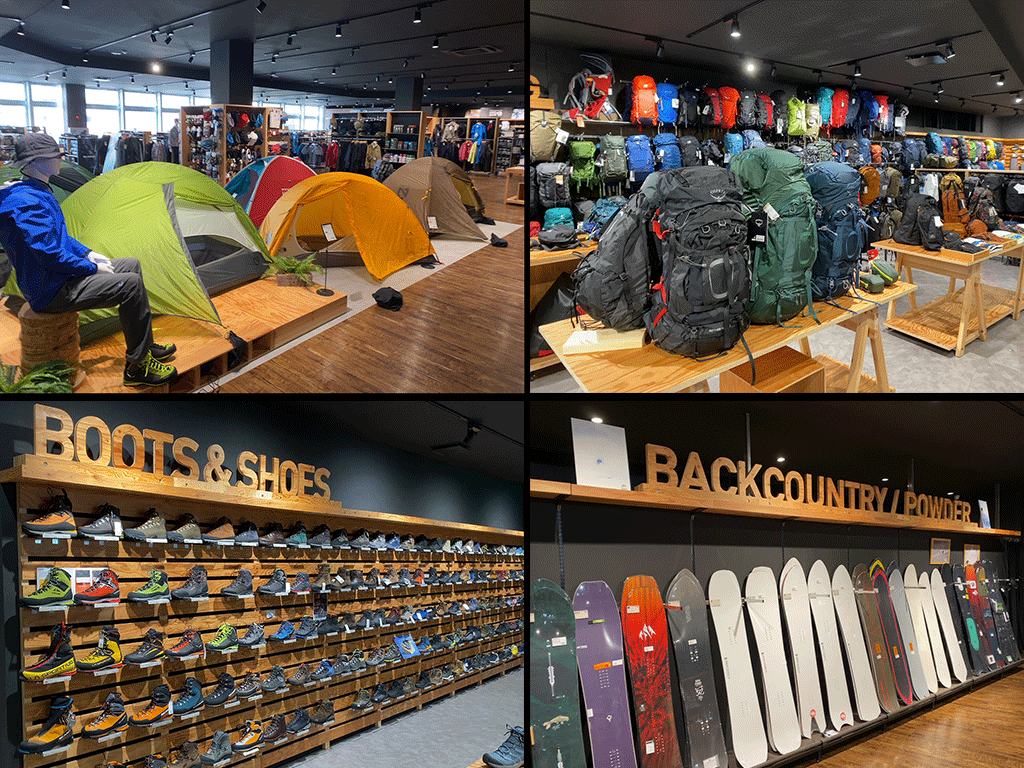スキー・スノーボードでは豊富な品揃えに加え、各種ブーツ・インソールの成型機や、WAXFUTUREを通年常設し、エントリー層からエキスパート層まで、さまざまユーザーのレベルや志向に合わせてウィンターシーンをサポートする。たくさんのプロダクツをその手に取って確かめたり、専門知識の豊富なスタッフの話をじっくり聞いて納得のいく買物ができる。店舗ごとにInstagramでアクティブに情報を発信し、ユーザーが欲しい情報とプロダクツをタイムリーに提供している。