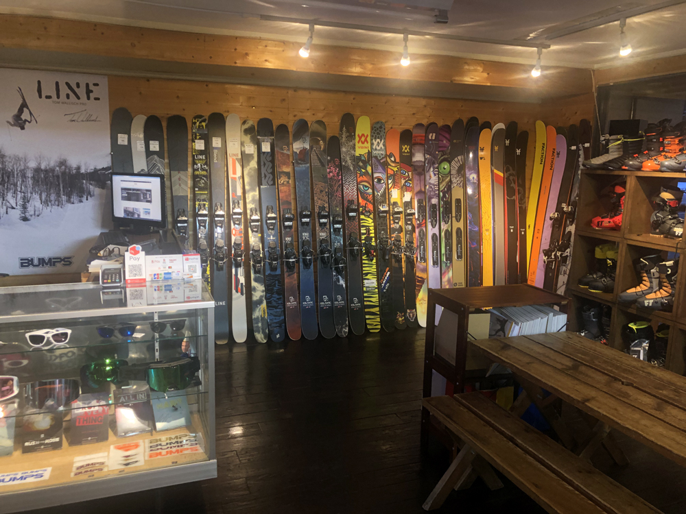 フリースキー用品の販売やイベントを通して、性別、年齢を問わず「楽しい」「気持ちいい」スキーライフを提案できるような店づくりを目指している。スタッフによると「プロショップはまだまだ入りずらいといったイメージを持つ人も少なくないですが、一度BUMPSに足を踏み入れたら、そんなイメージは吹き飛ぶと思います」とのこと。