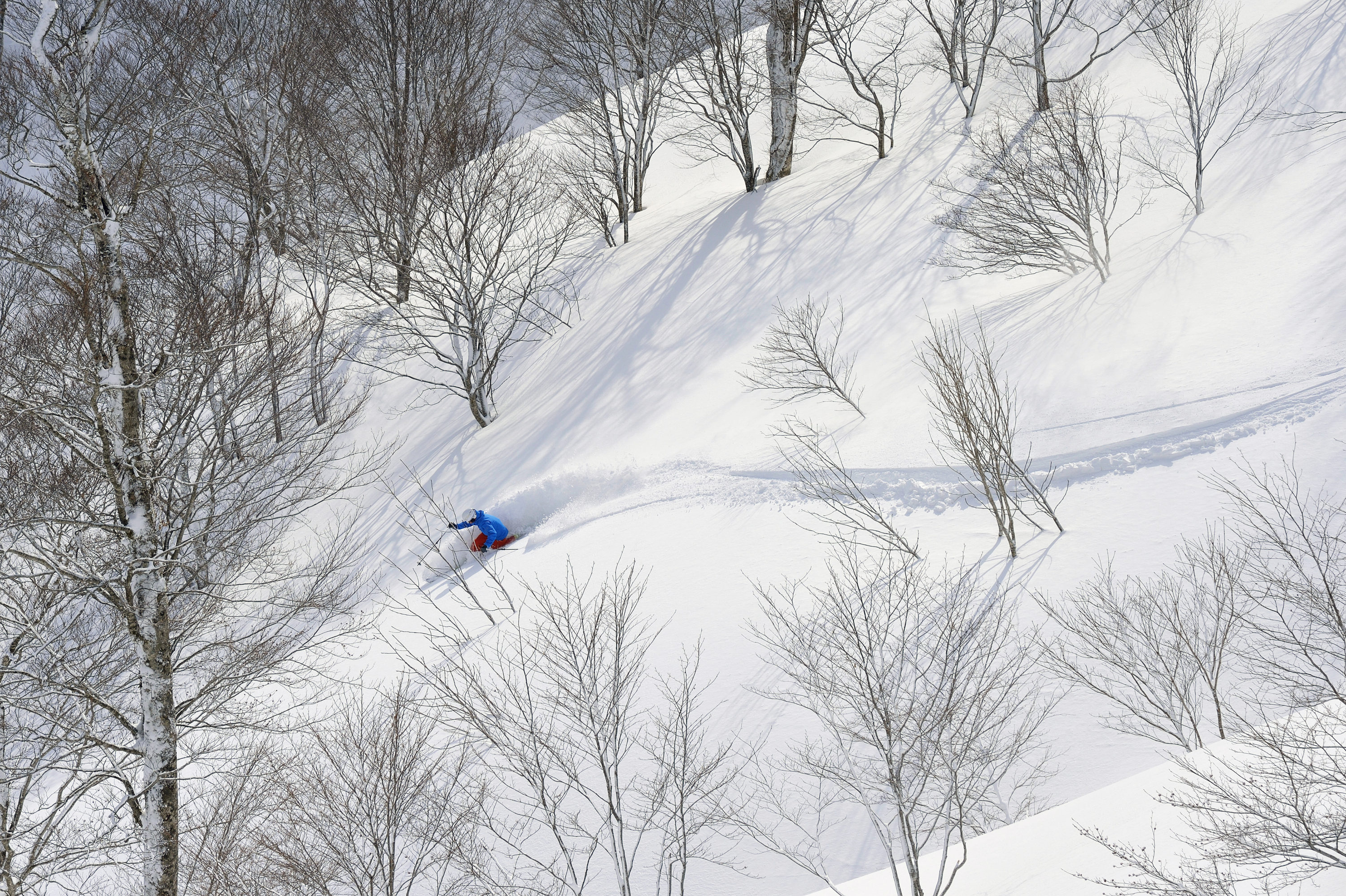 豊富な積雪と恵まれた地形からパウダーを味わえる夏油高原。そんなパウダーかつツリーランも味わえるエリアが14エリアも!ブナの原生林の中を滑り降りる喜びは格別だ。
