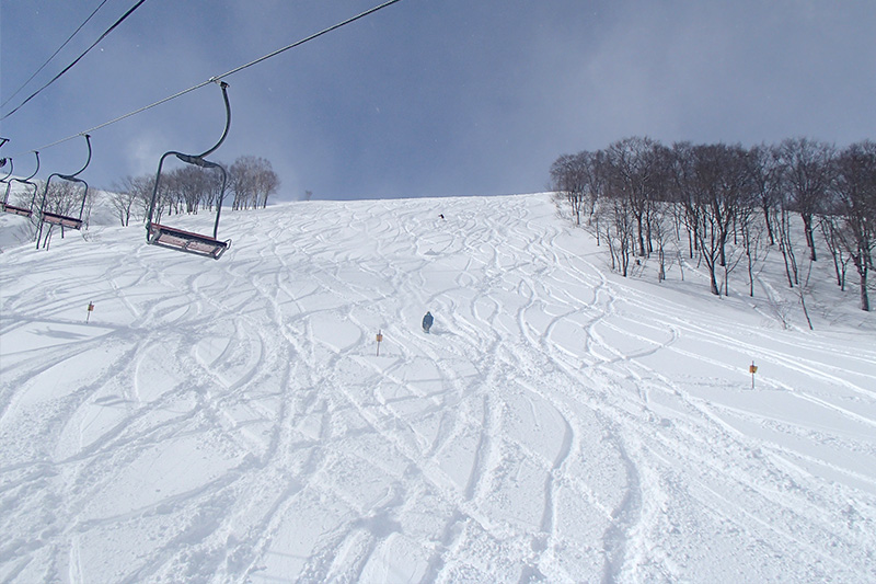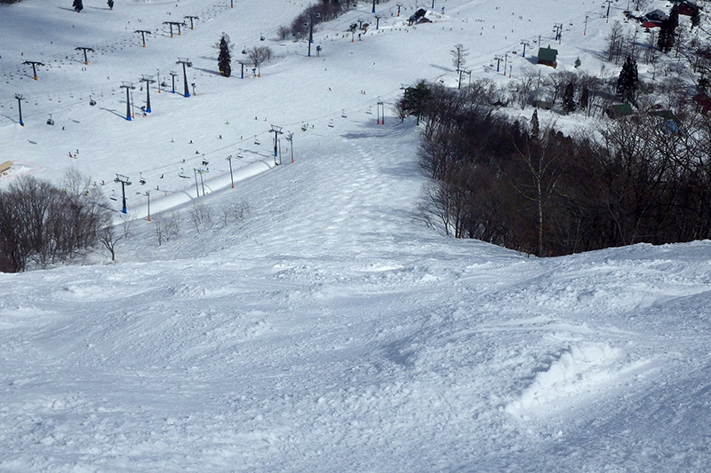 スキー場内でもっとも斜度のある斜面。出だしは幅が狭めで、斜度は緩やかだが、100mほど滑ると、スキーヤーズレフト側へと徐々に斜面が落ち込んでいき斜度が増す。圧雪車も入れないほどの急斜面なので、コブ斜面もできやすい。新雪のときは斜度変化が楽しめ、新雪でないときは難易度の高い斜面だ。