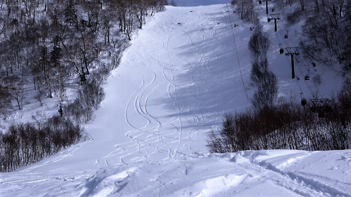 大人気を集めるキロロの代表的なゲレンデパウダースポット。朝里山トップからグランドライン→非圧雪のエキスパートAコースを経由してドロップイン。とてもワイドなオープンバーンで解放感たっぷりだ。朝イチのノートラックを滑ってみたい憧れの場所。
